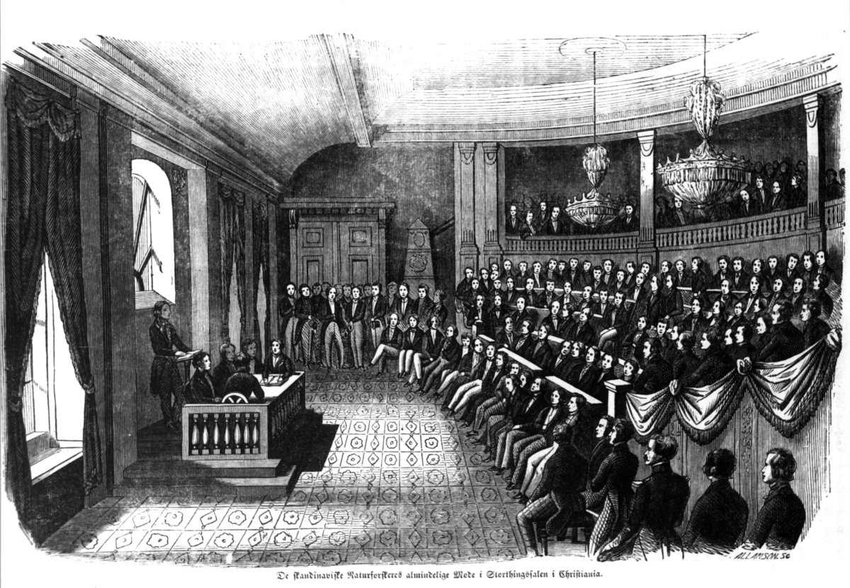 Kronprins Carl Johan og prins Oscar ankommer Stortinget geleidet av et stort følge. Katedralskolen i Christiania, der Stortinget er samlet, er opplyst med fargede lysekroner, lamper og lampetter. Galleriet er fylt av skuelystne.