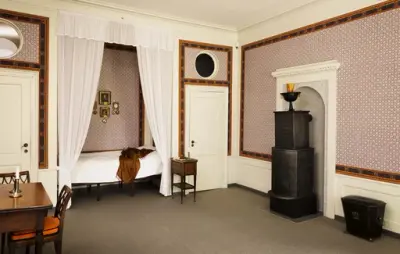 Fru Anker og dottera Annette hadde romma sine i sørfløya, medan Carsten Anker hadde kontor og sengekammer i andre høgda. I andre høgda var òg gjesterom og den store salen.