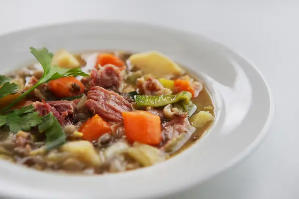SUPPE: «Kjød-Suppe med Hvidkaal i, omtrent skaaren saaledes som Rødkaal pleier at være skaaren» – slik beskriver sorenskriver Koren en av rettene ved prinsens taffel på Eidsvoll. I jubileumsåret 2014 var 1814-suppa årets bestselger. Foto: Eidsvoll 1814