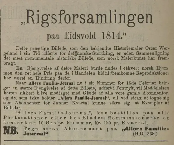 Oscar Arnold Wergelands Eidsvold 1814 er Norges mest kjente historiemaleri. Det framstiller Riksforsamlingen på Eidsvoll som drøfter utkastet til Norges grunnlov i mai 1814. Siden det først ble vist fram i mai 1885, har Wergelands bilde oppnådd status som nasjonalsymbol, og mange ser det som et ikonisk uttrykk for kampen om nasjonal selvstendighet, demokrati og folkestyre.