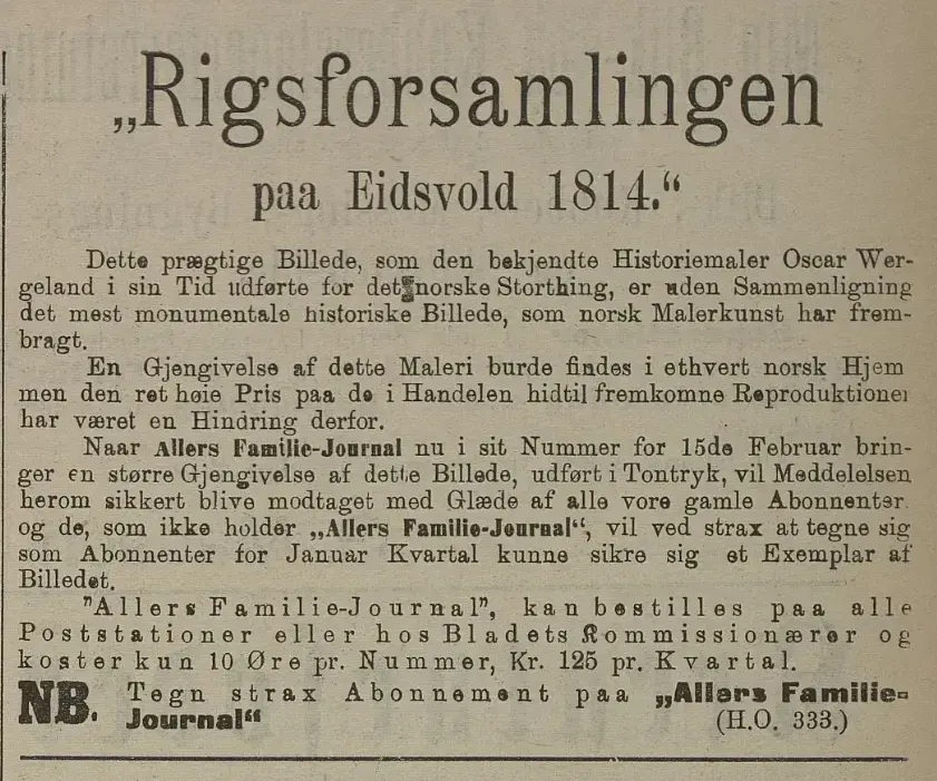 Fra reproduksjon av bildene gjennom fotografier og trykk til opphenging i patriotiske hjem og klasserom, til illustrasjoner i lærebøker og alle slags historieverk, sedler, mynter, frimerker og talløse postkort. Mye av dette vitner om en mer eller mindre systematisk statlig bruk av de to forsamlingsmotivene i nasjonsbyggingens tjeneste. Minnepolitikken har bidratt til å feste dem i vår kollektive bevissthet som nasjonalikoner i et omfang kunstverkene alene ikke kunne ha gjort.