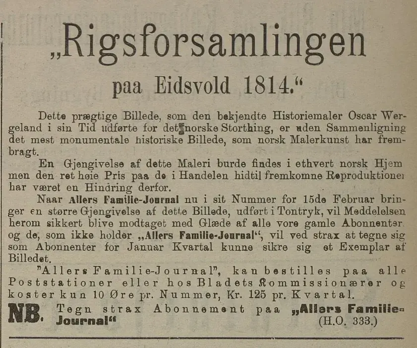 Faksimile. Annonse for Allers Familiejournal i Flekkefjordsposten 13. februar 1903 - 2/2