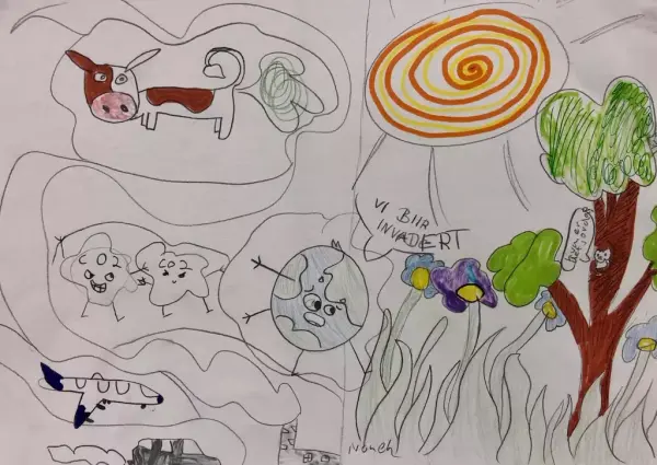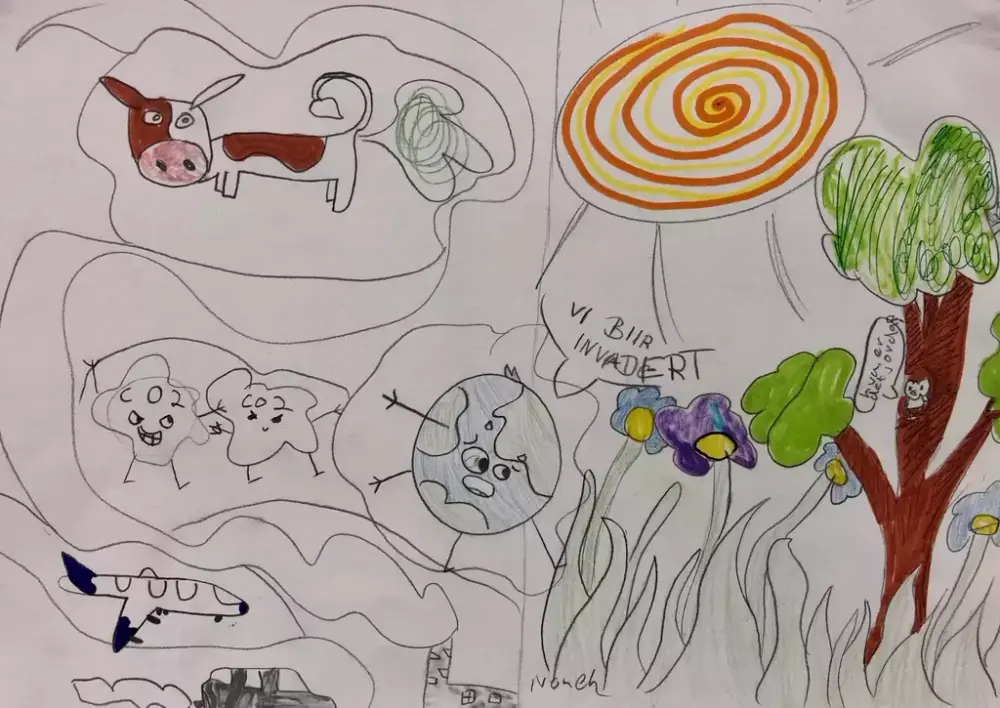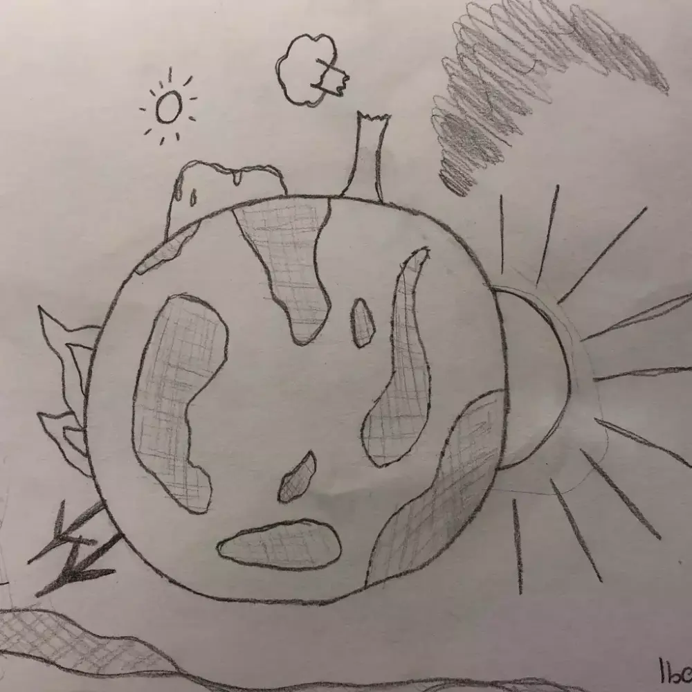I visuell kunst trener elevene seg på å se. I dette prosjektet har vi hatt fokus på å se hva som skjer rundt oss og i verden. Elevene lagde skisser av alt fra flom, tørke, issmelting og en klode som blir varmere.